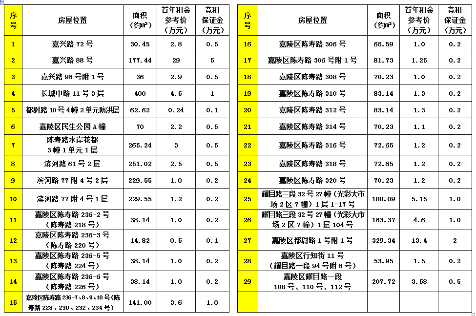 受委托,我公司將于2025年4月15日上午10時(shí)在南充市嘉陵區企業(yè)服務(wù)中心5樓會(huì )議室對下表內國有房屋進(jìn)行公開(kāi)招租:
